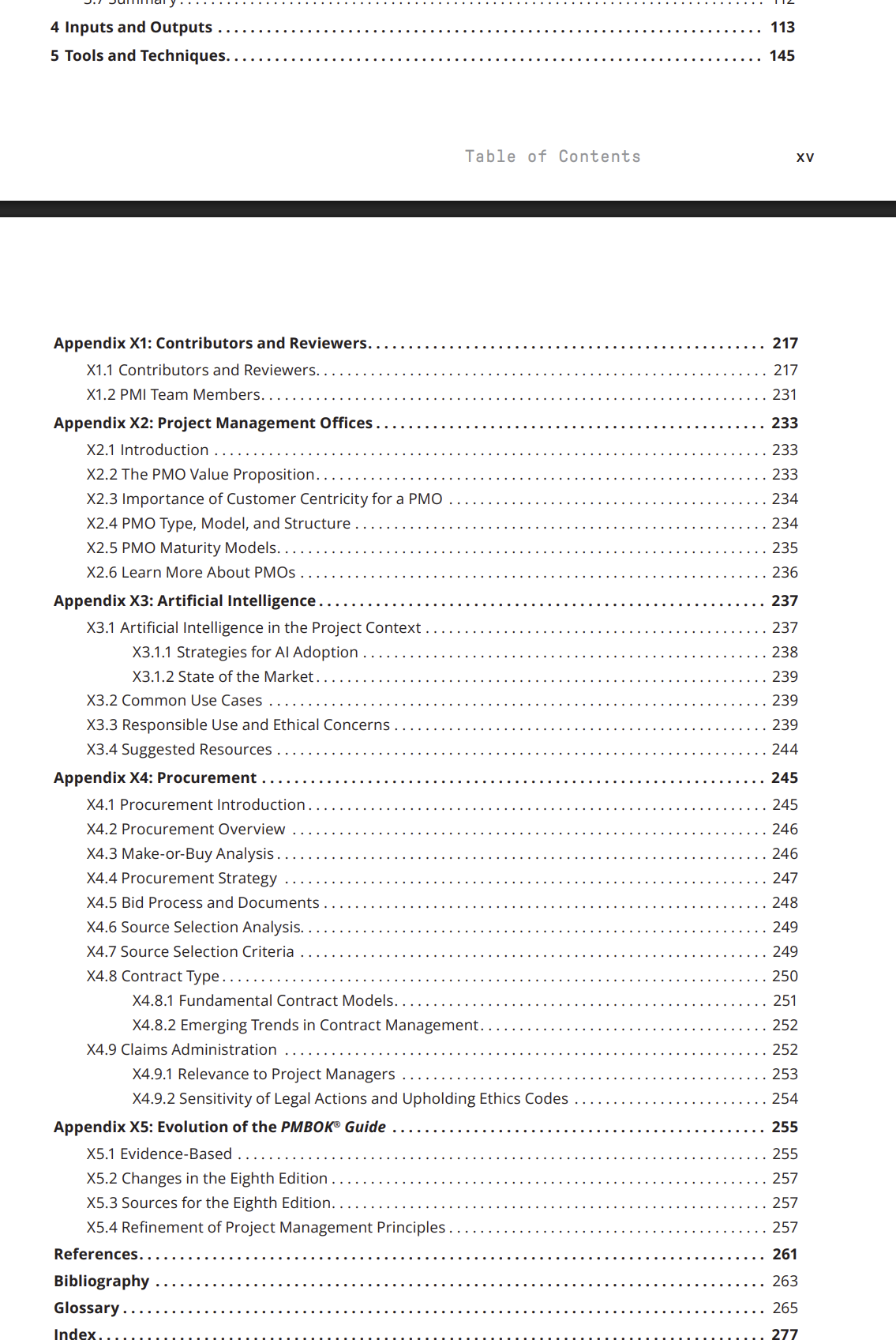 8판 내용과 더불어서 PMI 홈페이지에서 변경이 있었던, 6판의 ITTO (input and Outputs) 와 T&T (Tools and Techniques ) 가 7판으로 옮겨지면서 홈페이지에 PMI Standards+ 위치에 그 내용들이 다시 책에 일부 들어가는것으로 보인다 .별도 챕터로 존재하는것을 보니 6판 내용을 7판에 얹어서 작성되나보다싶다.